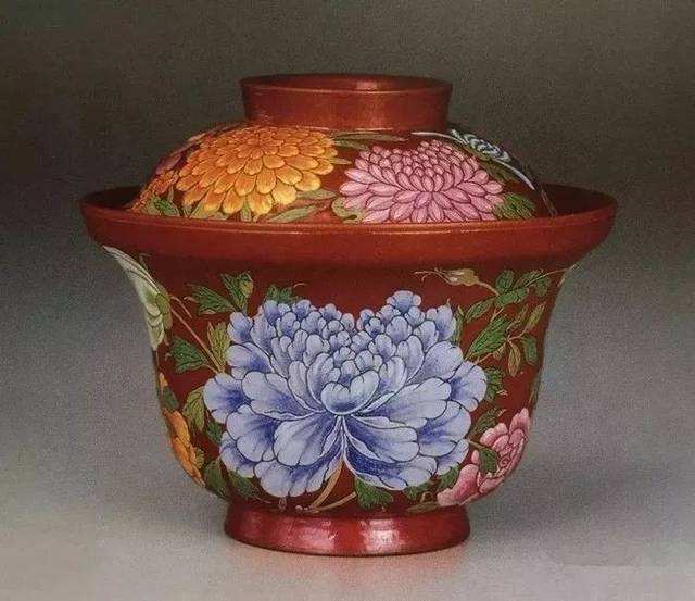 清康熙·宜興紫砂胎琺瑯彩四季花卉蓋碗