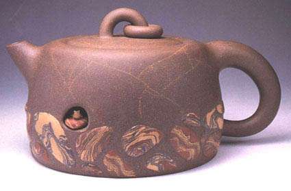 “陽羨(即宜興)瓷壺自明季始盛,上者與金玉等價(jià)”,說的就是陶器中的佼佼者——宜興紫砂茶具。紫砂壺早在北宋初期就已崛起,明代大為流行。其里外都不敷釉,采用當(dāng)?shù)氐淖夏?、紅泥、團(tuán)山泥摶制焙燒而成。由于成陶火溫高,燒結(jié)密致,胎質(zhì)細(xì)膩,既不滲漏,又有肉眼看不見的氣孔,且傳熱不快,不致燙手;若熱天盛茶,不易酸餿;即使冷熱劇變,也不會破裂 。...