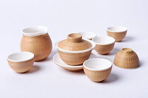 到了清朝,市面上出現(xiàn)了一種竹編茶具,此類茶具是由瓷胎搭配外部竹編包裹而成,內(nèi)胎多為陶瓷材質(zhì),包裹部分選用精挑 細(xì)選的慈竹,經(jīng)過破竹、去節(jié)、劃絲等十幾道工序,加工后的竹絲細(xì)如青絲,經(jīng)上色處理后,按茶具的形態(tài)大小編織而成,形成嚴(yán)密包裹胎體的外衣。且在泡茶過程中加上竹編外衣的保護(hù),可 減少茶具對(duì)皮膚造成的灼熱感。