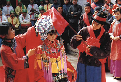 但大禮中,不管家境如何,茶葉、龍鳳餅、棗、花生等一些象征性禮品,也是不可缺少的。茶葉當然還帶有“從一”的含義。女方收到男家的彩禮以后,隨即也要送嫁妝和陪奩,經(jīng)過這些程序以后,才算完聘。女方的嫁妝也隨家庭經(jīng)濟條件而有多寡,但不管怎樣,一對茶葉罐和梳妝盒是省不掉的。
