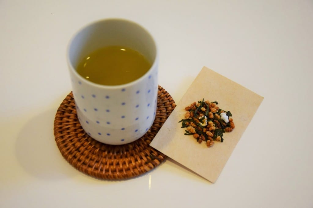 將浸泡蒸煮過后的玄米拿去炒,最后混入玄米和煎茶各半就為玄米茶。玄米的香味為其最大特征。由于茶葉量少因此咖啡因含量也不高。