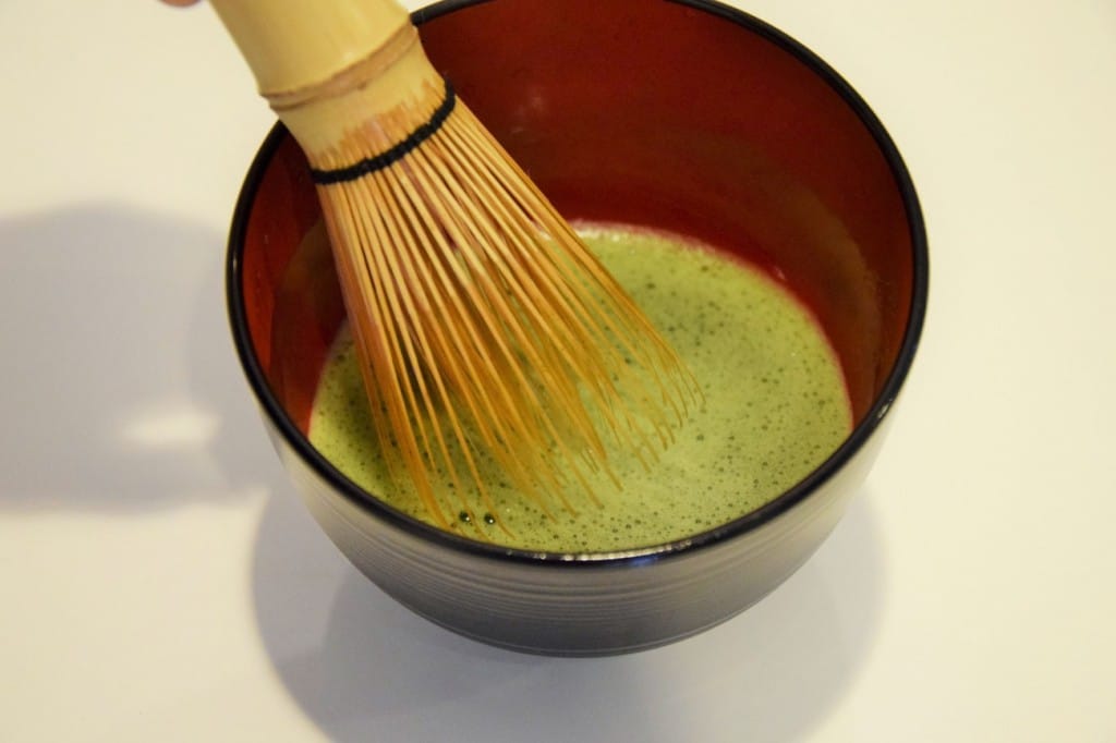 將摘下的茶葉干燥后用石臼碾碎成粉末狀后即為抹茶。和其他茶葉不同之處在于抹茶并沒有透明感。抹茶以茶葉清爽的芳香為特征,一般用“茶湯(茶の湯)”的傳統(tǒng)做法飲用。