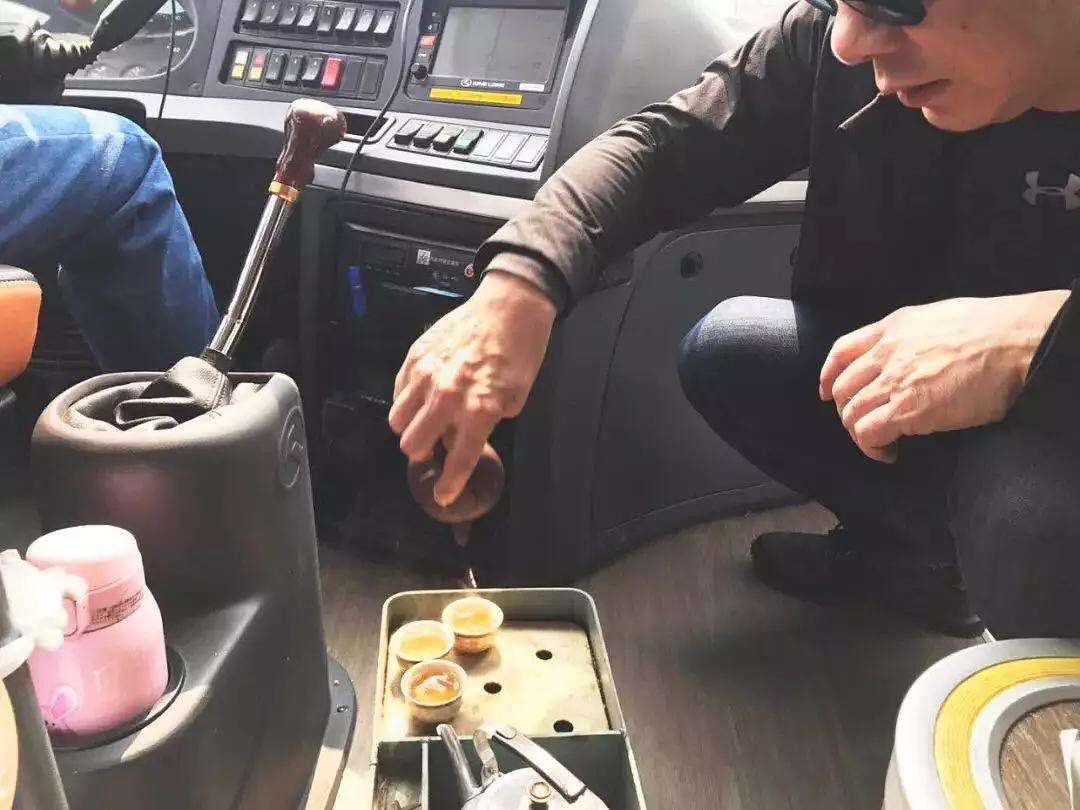 對(duì)潮汕人來(lái)說(shuō)沒(méi)有什么能夠阻擋喝茶的心,不少潮汕司機(jī)還會(huì)在車上配備工夫茶具。