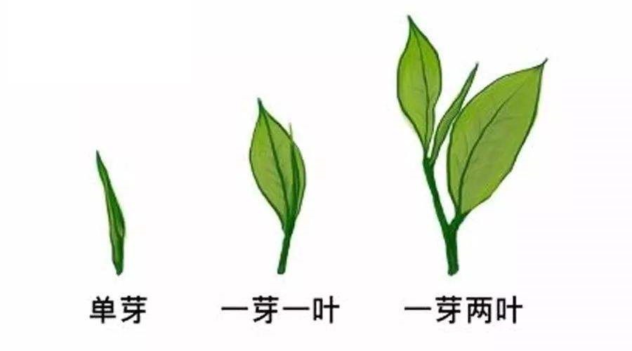 一槍一旗:一芽一葉,因為茶芽未舒展時尖細如槍,茶葉已舒展時如旗幟。又稱”中芽”。
