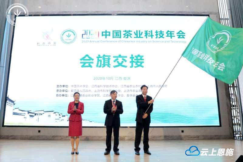 開幕式上,2021年中國茶業(yè)科技年會將在恩施舉辦的消息隆重發(fā)布,并舉行會旗交接儀式。恩施州委常委、州委秘書長夏錫璠接過會旗,向全球茶人發(fā)出下一屆年會邀請。