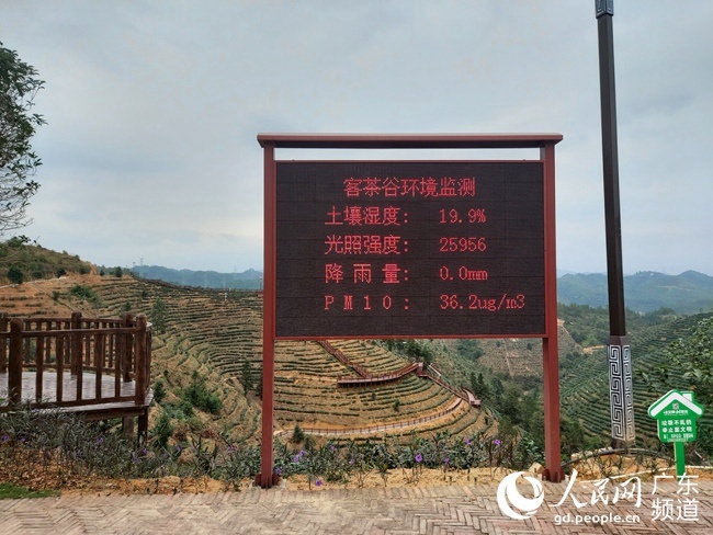 山路蜿蜒,青山環(huán)繞。走進(jìn)位于紫金縣紫城鎮(zhèn)藍(lán)坑村的“紫金客茶谷”,一塊環(huán)境監(jiān)測電子屏幕吸引人們的目光:土壤濕度19.9%、PM10濃度36.2ug/m3……