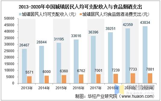 隨著我國經(jīng)濟持續(xù)向好發(fā)展,城鎮(zhèn)居民人均收入與消費水平持續(xù)提升。2013-2020年中國城鎮(zhèn)居民人均可支配收入由26467元增長至43834元,食品煙酒消費支出由5571元增長至7881元??焖僭鲩L的消費能力帶來多元化、品質(zhì)化的消費升級需求,利好整體大消費行業(yè),成為支撐新茶飲行業(yè)消費的基本盤。