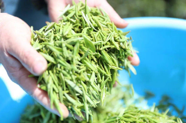 “因為離家比較近,所以每年采茶的時候我都會來。老板以每斤40元的價格進(jìn)行收購,中午的時候還發(fā)面包和水。”肖書琴一邊熟練地采摘著嫩綠的茶葉,一邊笑著說。采茶只能掐枝葉上的一點點嫩芽,所以采一斤茶需要大半天的時間。