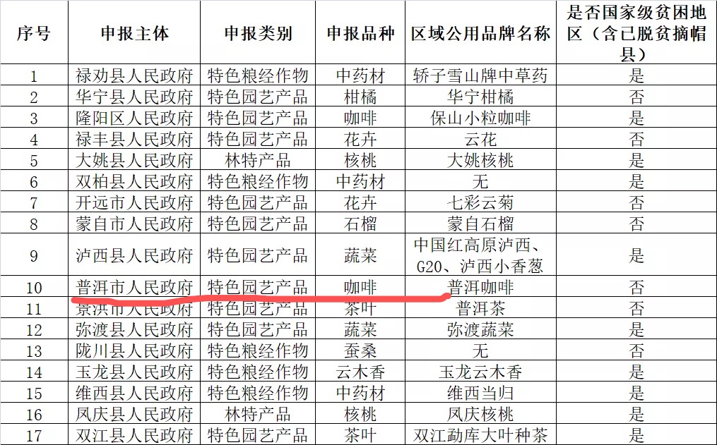 普洱咖啡上榜第二批“云南省特色農(nóng)產(chǎn)品優(yōu)勢(shì)區(qū)”名單